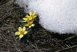 Ranunculus jovis is a species of buttercup known by the common name Utah buttercup[1][2] or Jupiter buttercup.[3] It is native to the mountains west of the United States, from Nevada to Wyoming. It is a small plant, growing a few centimeters tall on hairless stems with a few deeply divided fingerlike leaves at the base. It produces yellow flowers with five rounded petals, yellow stamens around a central nectary.