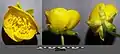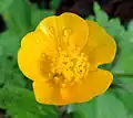 Ranunculus lanuginosus is an entomophilous species[2] that flowers between May and August.[5] This buttercup has yellow to orange flowers with darker middle area and five floral leaves in both corolla and calyx.[4] Each flower measures from 2 to 2.5 centimetres.[5] Calyx has hairy sepals. The plant's fruit is so-called achene; it is hairless and laterally squeezed, while it ends with long and curved rostrum.[4]
