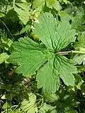 Ranunculus lanuginosus is herbaceous and perennial buttercup that can reach from 30 to 80 centimetres of height. It is usually an upright-growing and spread out plant that has stem with dense layer of trichomes. This species' stem is round and thick, as well as hollow. Its basal leaves have long leafstalk and are palmately lobed; with five segments being ovate and hirsute, while having double serrated margin. Upper stem leaves are sessile and palmately lobed, with wide segments.[2][4] In most cases, leaves measure 12 centimetres in length and 8 centimetres in width.[2]