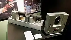 The camera was developed by Harold Edgerton in the 1940s and was first used to photograph the rapidly changing matter in nuclear explosions within milliseconds of detonation, using exposures of several microseconds.[1] To overcome the speed limitation of a conventional camera's mechanical shutter, the rapatronic camera uses two polarizing filters and a Faraday cell (or in some variants a Kerr cell). The two filters are mounted with their polarization angles at 90° to each other, to block all incoming light. The Faraday cell sits between the filters and changes the polarization plane of light passing through it depending on the level of magnetic field applied, acting as a shutter when it is energized at the right time for a very short amount of time, allowing the film to be properly exposed.