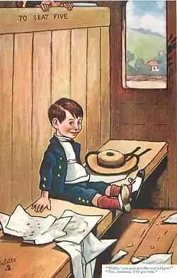 The famous "Oilette" series was introduced, as well as the "Proof" series. The Proof series were printed on superior board, every set was stamped with a consecutive number, and a register was kept of whom the set had been sold to.[13] Richard F. Outcault, the American cartoonist of Buster Brown fame, also produced postcards for the company around this time.<[1]>