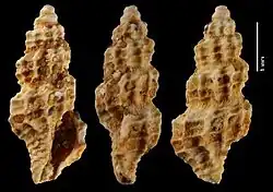 | Shell of † Raphitoma merignacensis (specimen at MNHN, Parsi) | |
