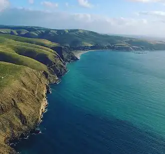 Rapid Bay features in the creation myths of the Kaurna and Ramindjeri peoples most notably as the burial site of the nephew of the Kaurna creator ancestor known as Tjilbruke.[6] There is uncertainty as to the Kaurna name for Rapid Bay, which has been cited as Patparno,[7] Patpangga (meaning "south" or "south place"), and Yarta-kulangga, a popular campsite at Rapid Bay, whose name probably means "place of the separate country". However, there is no evidence that any of these names was a place name for Rapid Bay,[8] though the bay is officially dual-named Patpangga.[9]