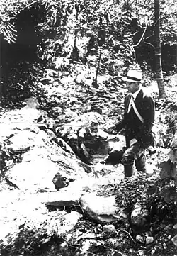 Virginia Governor Harry F. Byrd was a strong supporter of plans to establish Shenandoah National Park, and persuaded Will Carson, Chairman of Virginia's Commission on Conservation and Development, to lead the effort.[6] Two months before Hoover's March inauguration, Carson recommended that the President-elect and his wife Lou Henry Hoover consider establishing their camp at the headwaters of the Rapidan River. The remote, undeveloped site lay on Doubletop Mountain, on the eastern slope of the Blue Ridge Mountains in Madison County.[7] The Mill Prong and the Laurel Prong streams join within the camp to form the Rapidan River, and all three provide excellent fishing.