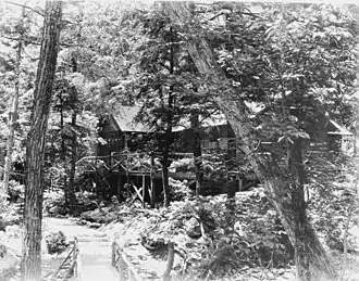 Less than three weeks after Hoover's March 4 inauguration, the Madison Eagle announced the President and his wife had selected the upper Rapidan site. Although Virginians offered to give Hoover the camp, the President used his own funds to buy the land for $1,045 (at the going rate of $5 per acre), and building materials for $22,719.[8][9] The Marine Corps provided construction labor as a "military exercise."[5] The Hoovers initially envisioned a village of tents, but soon decided on a more permanent settlement. Mrs. Hoover oversaw construction as the Marines built thirteen assorted buildings including a lodge, two mess halls, cabins and a "Town Hall." They also created several miles of hiking trails, a stone fountain, concrete-lined trout pools, and a miniature golf course.[10]