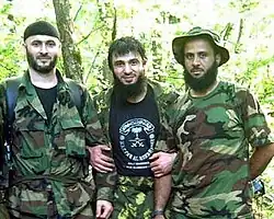 ![]() Khalilov (centre) together with Sheikh Abdul-Halim and Abu Hafs al-Urduni. | |