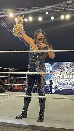 On April 7, 2021, at the first night of NXT TakeOver: Stand & Deliver, González defeated Shirai to become the new NXT Women's Champion.[30] On the May 11 episode of NXT, she made her first successful title defense against Mercedes Martinez.[31] On June 13 at NXT TakeOver: In Your House, González retained the title against Ember Moon.[32] On the July 27 episode of NXT, González was attacked by Kai, turning face for the first time in her career and ending their alliance.[33] This led to a title match between the two at NXT TakeOver 36 on August 22,[34] where González retained and was confronted by Kay Lee Ray.[35]