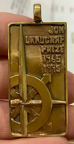 Since 1995, the Jonathan Zerse Landgraf medal has been presented annually to the winner of each Lair's Mass Challenge competition. First-time winners receive the medal in bronze; two-time winners have their medal silver-plated; three-time winners have their medal gold-plated, Each subsequent win is marked with the addition of a star on the ribbon. The award is a memorial in honor of an early member of the society. As of October 2021, a total of 21 medals have been awarded.[16]