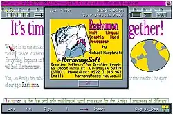 Rashumon was a multilingual graphical word processor developed for the Amiga computer by an Israel-based company called HarmonySoft (founded by Michael Haephrati in 1989)[1] and was sold until after the demise of Commodore in 1994 (a lower-priced "student" version was released in 1995[2]).[3] Rashumon had particular support for Hebrew, Arabic[4][5] and Russian as well as English, and it could send its text to speech synthesis in English.[6]