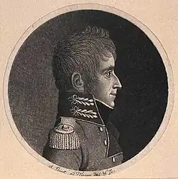 Impressed by Krag's abilities, General W v. Huth approved, in 1793, his application for foreign service.[1] He served for a short time with the Austrian troops under the Prince of Coburg at the Siege of Valenciennes (1793) and with the Prussian army and later with the Dutch army as a supernumerary on the general staff of the Prince of Orange[1][2] in the War of the First Coalition against the French. In Dutch service, he was later appointed as an engineer and aide-general quartermaster, in which capacity he saw service on campaign for two years at Menin, Maubeuge, Cambrai and Landrecies, Gosselies, Jumet, and Fleuru.