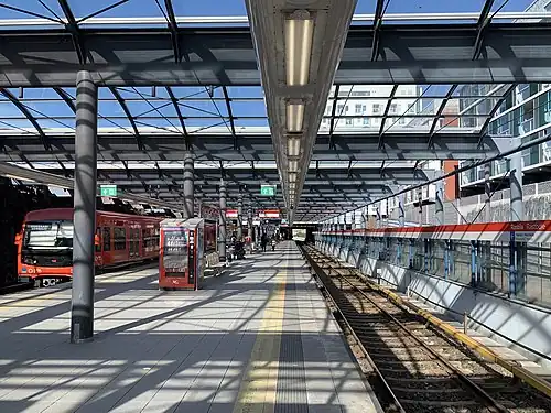 Rastila metro station (Finnish: Rastilan metroasema, Swedish: Rastböles metrostation) is a ground-level station on the M1 line of the Helsinki Metro.[2] There are 134 bicycle and 34 car parking spaces at Rastila.[3] It serves the residential areas of Meri-Rastila and Rastila in the district of Vuosaari, in East Helsinki.