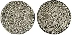 ![]() A silver tanka of Ratna Manikya I (1464) | |