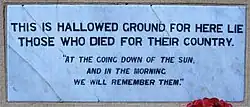 The replica memorial is based on the 1941 memorial in the Tobruk War Cemetery, built by Australian soldiers[3] during the siege, which has since been destroyed. Incorporated into the memorial is the original inscription stone, the only surviving relic of that memorial, and at one time a front step of the Tobruk Post Office.