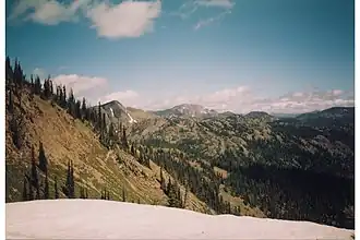 ![]() The high country of the Rattlesnake Mountains, looking towards McLeod Peak | |