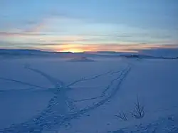 Raudvatnet[2] (lit. 'the red lake') is a lake in Rana Municipality in Nordland county, Norway. The European route E12 highway passes along the northern and eastern shores of the lake between the town of Mo i Rana and the border with Sweden. A Red cross hut (Norwegian: Rauvasshytta) is located east of the lake Raudvatnet. Water flows into the lake Raudvatnet primarily from the nearby lake Tverrvatnet to the south. From Raudvatnet, the water flows into the river Tverråga, a tributary to the main river Ranelva.