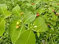 Rauvolfia tetraphylla is a plant in the family Apocynaceae, growing as a bush or small tree. It is commonly known as the be still tree[2] or devil-pepper. The plant is native to Mexico, Central America, West Indies, and northern South America. It has been cultivated widely as both an ornamental and for use in traditional medicine. It is now naturalized throughout the tropics including Australasia, Indochina, and India.