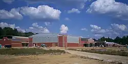 The campus is 69 acres (28 ha) and located in northern Ravenna along North Chestnut Street. The district first purchased the land in 1973 but nothing was built at the site until 1999 when athletic facilities were constructed, funded mainly by private donations and the sale of personal seat licenses.[9][10][11] Prior to that time, outdoor sports were held at the old Gilcrest Stadium and various locations throughout the area. The campus includes Portage Community Bank Stadium which has a seating capacity of 5,000 and features an eight-lane all-weather running track and artificial playing surface. The stadium, one of the first in Ohio to have FieldTurf, became one of the first in the country to have a non-traditional field color when blue turf was installed in 2013 instead of the traditional green.[12] A baseball field, softball field, eight tennis courts, and a cross country course are also on campus.[13]