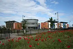 The development was planned to be environmentally sensitive. Space for cars is limited, with traffic calming measures and frequent bus service links to the town centre. Mixed cycle paths and walkways are also a feature. Incorporated into the design of the buildings and sewers is a sustainable urban drainage system which allows rainfall to be returned to the environment without going through the sewerage system.
