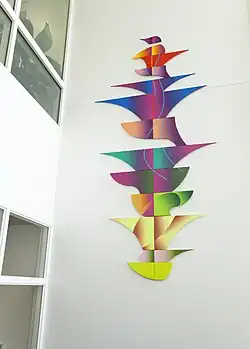 Using acrylic paint and wood—and sometimes Plexiglas and UV light—Burggraf frequently calls his paintings "color constructions",[4][5] and they have been exhibited in the United States, Sweden, and Korea.[6][7][8][9]