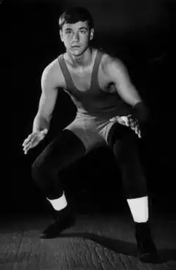 Murphy entered college at Oklahoma State University and caught the head wrestling coach's eye by winning an intramural tournament. This allowed him to "walk on" the team.[5] Murphy's collegiate wrestling career included two appearances in the NCAA national tournament in 1968 and 1969 with the OSU Cowboys. He placed fifth in the 137 pound weight class and second in the 145 pound weight class, making him a two-time NCAA All-American.[6][7] He was a hopeful to compete in the 1972 Olympics. Murphy was also a brother of the Oklahoma Alpha Chapter of the Sigma Phi Epsilon fraternity at Oklahoma State.