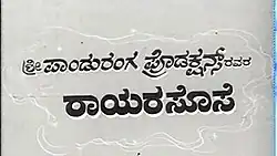 Rayara Sose (ⓘ) is a 1957 Indian Kannada-language film produced by Pandari Bai[1] and directed by R. Ramamurthy and K. S. Murthy. It stars Rajkumar, Kalyan Kumar, Mynavathi, H. Ramachandra Shastry, Pandari Bai and Ramadevi. The music of the film was composed by R. Diwakara. This movie has S. Janaki's first released Kannada film song Thaalalentho Shokavega. The movie speaks against the evil practice of dowry.[2] This is Rajkumar's first social drama movie.[3] The movie was based on a Marathi play.[4] The film did not do as well as expected.[5]