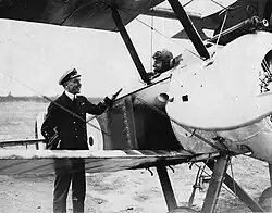 When war broke out in 1914, Collishaw's first idea was to join the Royal Navy, but did not hear from them for some time. Toward the end of 1915, Collishaw heard that the Royal Naval Air Service was hiring, and so he applied to them instead, and attended flight training (ground school and dual instruction) at the Curtiss Aviation School in Toronto (at his own expense).[3] He qualified as a probationary pilot in January 1916 and crossed the Atlantic on the Adriatic. His first posting was to the naval air station at Redcar, where he completed his pilot training, flying the Caudron G.3; his first solo taking place 16 June 1916.[4] After attending the Gunnery School at Eastchurch, he was confirmed as a full flight sub-lieutenant.