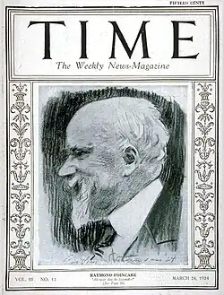 Raymond Nicolas Landry Poincaré (French: [ʁɛmɔ̃ pwɛ̃kaʁe]; 20 August 1860 – 15 October 1934) was a French statesman who served as President of France from 1913 to 1920, and three times as Prime Minister of France. He was a conservative leader, primarily committed to political and social stability.[1]