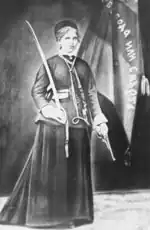 Rayna Popgeorgieva Futekova (Bulgarian: Райна Попгеоргиева Футекова), better known as Rayna Knyaginya (Райна Княгиня), aka "Queen of the Bulgarians". She was a Bulgarian teacher and revolutionary, famous for sewing the flag of the April Uprising of 1876.[1][2]