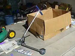 The Razor Scooter is a compact folding scooter developed by Micro Mobility Systems and manufactured by JD Corporation.[1] Over 5 million units were sold in the six months following the launch of the first Razor scooter in 2000, and it was named as Spring/Summer Toy of the Year that same year.[2] The first electric Razor scooter was released in 2003.[3] Today, the Razor is manufactured by RazorUSA, based in Cerritos, California, in the United States.