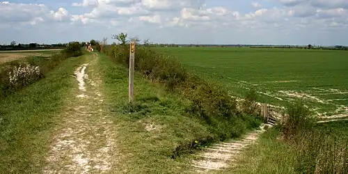 Reach Lode, a Roman canal, still exists, and remains navigable. The village church, originally Holy Trinity School Church[3] and latterly called St Etheldreda's,[4] was built in 1860, on the site of the former chapel of St John. The ruined perpendicular arch of the old chapel is visible behind the new church.