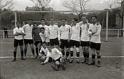 Real Unión then won the Copa del Rey a further three times, beating Real Madrid in 1918[3] and again in 1924 (with former Derby County and England striker Steve Bloomer acting as their coach). In 1927, they defeated Arenas Getxo in the first all-Basque final. The latter two finals both ended in 1–0 victories, with José Echeveste netting the winner on both occasions. In 1922, they were runners-up, losing 5–1 to Barcelona. In 1930, they participated in the Coupe des Nations in Geneva, Switzerland, a predecessor of the UEFA Champions League since the champions of all major European football nations were invited, although it has never been entirely clear why Unión was invited as they had finished sixth in the 1929–30 La Liga. Nonetheless, they were eliminated in the quarter-finals by Slavia Prague.[4] The club was relegated from La Liga in 1932.