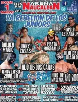 Rebelión de los Juniors (2015) (Spanish for "The Junior Rebellion") was an annual professional wrestling major event produced by Mexican professional wrestling promotion International Wrestling Revolution Group (IWRG), that took place on March 1, 2015 in Arena Naucalpan, Naucalpan, State of Mexico, Mexico. The main event of the show was an eight-man elimination match featuring eight "Juniors" with the last surviving participant becoming the number one contender for the IWRG Junior de Juniors Championship held by Super Nova at the time.