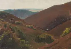 Rebild National Park (Danish: Rebild Bakker) is a Danish national park situated near the town of Skørping in Rebild municipality, Region Nordjylland in northern Jutland, Denmark. The idea of arranging an annual gathering for Danish-Americans in a moorland setting in Denmark originated with Danish immigrant Max Henius. Funds were raised by Danish Americans to purchase to 200 acres (0.81 km2) of heather-covered hills and moorland, located within Denmark's largest forest, Rold Forest (Danish: Rold Skov).[3][4][5]