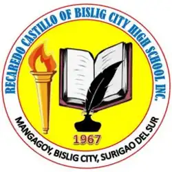 Recaredo Castillo of Bislig City High School Inc. (RCBCHSI), formerly Recaredo Castillo College (RCC), is a private educational institution established in 1967. It is located in Gamaon District, Mangagoy, Bislig, Surigao del Sur in the Philippines. The school is named after Recaredo Castillo, former mayor of Bislig. It offers junior high school, senior high school, TESDA-accredited vocational courses and previously elementary school and college courses.