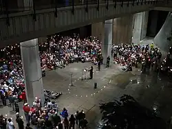 The Senate passed the Marriage Equality Act of 2013 (Hawaiian: Kānāwai Kaulike Male o ka makahiki 2013) on October 30 by a vote of 20–4,[43] and the House followed by a 30–19 vote on November 8,[44][45] though not before an extensive 'citizens filibuster' attempt to block the bill's progress.[46] The bill returned to the Senate for approval of House amendments which expanded religious exemptions, and the Senate provided final legislative approval on November 12, voting 19–4 for passage.[47] Governor Abercrombie signed the bill on November 13,[48] and same-sex couples began marrying on December 2, 2013.[49] The first same-sex couple to marry in Hawaii was Jonipher Kwong and Chris Nelson seconds after midnight on December 2 at the First Unitarian Church in Honolulu.[50] In the first two weeks after the law went into effect, 526 same-sex couples had applied for marriage licenses.[51]