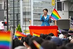 In December 2018, the Constitutional Democratic Party announced it would introduce a bill in 2019 to amend the Civil Code to legalise same-sex marriage.[74] The bill was submitted to the National Diet by the CDP, the Communist Party and the Social Democratic Party on 3 June 2019. It sought to adopt gender-neutral language, with the terms "party of marriage" being used rather than "husband and wife", and "parents" rather than "father and mother".[75][76][77] In June 2019, the CDP added the legalisation of same-sex marriage and ending discrimination against the LGBT community to their party platform ahead of the 2019 House of Councillors election.[78] The bill did not advance before the 2021 general election. A new same-sex marriage bill was introduced to Parliament by the CDP in March 2023.[79] The Communist Party introduced its own bill on 27 March 2023.[80]