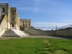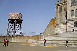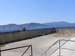 The Recreation Yard was the yard used by inmates of Alcatraz Federal Penitentiary between 1934 and 1963. It is located adjacent to the Dining Hall northwest of the end of D-Block on a raised level surrounded by a high wall and fence above it.[1][2] Guard Tower #3 lay just to the west of the yard.[3] The gun gallery was situated in the yard, mounted on one of the dining hall's exterior walls.[4] The recreation yard faced the mainland.[5]