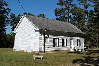 Red Banks Primitive Baptist Church is a historic Primitive Baptist church located between Meeting House Branch and E. Firetower Road in Greenville, Pitt County, North Carolina. The original church building was set on fire on December 30, 1863, by Union forces under the command of Col. Joseph M. McChesney.[2] It was rebuilt in 1893 and is a one-story, frame, gable front, rectangular, building measuring approximately 50 feet by 30 feet. It is two bays wide and five bays deep and sits on a brick pier foundation. Located on the property is the contributing church cemetery with less than 20 markers.[3]
