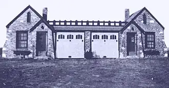 Built in 1931 by Parkville, Missouri banker and developer Emmett Breen at the junction of US 71 and US 71 Bypass, now Missouri Route 291, the red brick and tile Tavern included a popular restaurant and ballroom. Back behind the Tavern was the Tourist Court— two small cabins connected by two garages. The site is just northeast of the main Kansas City International Airport exit off I-29. Today it is within the city limits of Kansas City. An Interstate entrance ramp runs almost squarely through the property.[1]