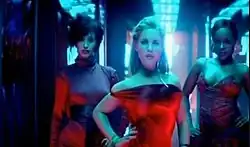 The Sugababes performed "Red Dress" in Turin, Italy, in February 2006 for Top of the Pops at the Winter Olympics.[53] To promote the song's release, they performed it on 6 March 2006 at the HMV store on Oxford Street, London.[54] The single appeared in the set list for the group's Taller in More Ways tour in 2006, and served as the shows' encore in conjunction with "Push the Button".[55] According to Craig Hope of Chronicle Live, the song "came amid a sea of manic applause".[55] "Red Dress" was featured in the set list for their 2007 tour in support of Overloaded: The Singles Collection.[56] The Sugababes performed the single at the Aintree Pavilion in July 2007 as part of the Liverpool Summer Pops music event.[57] It was the opening song of the gig,[58] and the trio was backed by a five-piece band.[57] The single was performed on 14 September 2007 during their gig at indig02, a live club for smaller music events.[59] Nick Levine of Digital Spy described the performance as "one of the night's pulsating highlights".[59]
