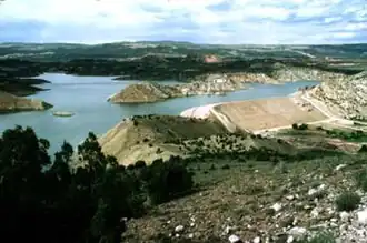 The Red Fleet Dam is a 161-foot-high (49 m), 1,670-foot-long (510 m) earthfill dam. The reservoir is fed by Big Bush Creek and is part of the CUP-Jensen Unit project. It was constructed in 1980.[3]