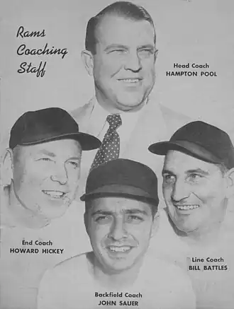 Howard Wayne "Red" Hickey (February 14, 1917 – March 30, 2006) was an American professional football player and coach. He played in the National Football League (NFL) with the Pittsburgh Steelers in 1941 and the Cleveland / Los Angeles Rams from 1945 to 1948. Hickey served as head coach for the NFL's San Francisco 49ers from 1959 to 1963.