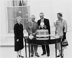 The Kennedy renovation was overseen by American antiques autodidact Henry Francis du Pont and French interior designer Stéphane Boudin and his company, Maison Jansen.[5] Kennedy also established an advisory Committee on Fine Arts made up of museum professionals as well as wealthy individuals interested in antiques.[6] Kennedy was an ardent admirer of French interior design,[3] and the Red Room was not only the first room to be redesigned during the Kennedy renovation but also the room refurbished almost completely in a French style.[7] But because the involvement of a French interior decorator was considered politically unpalatable to the American people, Boudin's role in redecorating the Red Room was not mentioned and the refurbishment was for many years attributed solely to Parish.[8]