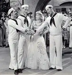 Skelton appeared in numerous films for MGM throughout the 1940s. In 1940, he provided comic relief as a lieutenant in Frank Borzage's war drama Flight Command, opposite Robert Taylor, Ruth Hussey, and Walter Pidgeon.[38] In 1941, he also provided comic relief in Harold S. Bucquet's Dr. Kildare medical dramas, Dr. Kildare's Wedding Day and The People vs. Dr. Kildare. Skelton was soon starring in comedy features as inept radio detective "The Fox", the first of which was Whistling in the Dark (1941) in which he began working with director S. Sylvan Simon, who became his favorite director.[39] He reprised the same role opposite Ann Rutherford in Simon's other pictures, including Whistling in Dixie (1942) and Whistling in Brooklyn (1943).[40][41][42] In 1941, Skelton began appearing in musical comedies, starring opposite Eleanor Powell, Ann Sothern, and Robert Young in Norman Z. McLeod's Lady Be Good.[43] In 1942, Skelton again starred opposite Eleanor Powell in Edward Buzzell's Ship Ahoy, and alongside Ann Sothern in McLeod's Panama Hattie.[44]