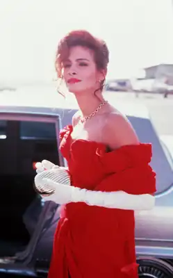 Julia Roberts wore a red dress in the 1990 romantic comedy film Pretty Woman. The ensemble was created by costume designer Marilyn Vance, and is worn during a "transformative" scene in the film where Roberts' character accompanies her love interest to a night at the opera. Thirty years after the film's release, Vogue Paris called the off-the-shoulder evening gown “iconic”, and said that it helped make the romantic comedy "legendary".[1]