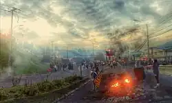 The severe economic effects and the poor response provided by the administration of Michelle Bachelet —as well as the controversial dumping of more than 4,700 tons of decomposing salmon off the coast of Chiloé, carried out in March by the salmon industry with the authorization of the Government—provoked a social mobilization unprecedented in the history of Chiloé, which, by blocking routes and maritime access to the island, kept the archipelago paralyzed and isolated from the mainland for eighteen days —between the 2nd and the 19th of may-. The blockades and protests would end after all the mobilized communes reached agreements with the Government on economic aid,[1][2] but the ban on extracting resources would remain in place for several months in various areas of the region, due to the presence of toxins.