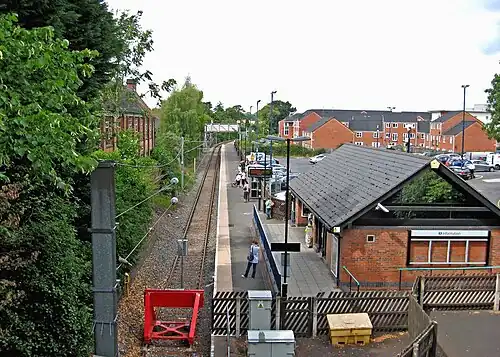 Redditch railway station serves the town of Redditch, North Worcestershire, England. It is the southern terminus of the Cross-City Line 14.5 miles (23 km) south of Birmingham New Street. The station, and all trains serving it, are operated by West Midlands Trains. Redditch station sits at the end of a single track branch line from Barnt Green which forms part of the Cross-City Line. The line used to continue south to Ashchurch and also Evesham but this was closed in the 1960s.