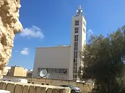 The Rediffusion company acquired the plot of land in Gwardamanġa from the Ursuline Sisters on 28 December 1954, for a perpetual annual rent of £206 for 100 years. The agreement stated that the place should not be used for any immoral activities.[2] The building was designed by the architect Carmelo Falzon, and the project cost around £150,000.[3][4] The first broadcast from the new building occurred on 30 December 1957,[1] and it was inaugurated by Governor Sir Robert Laycock on 23 January 1958.[4][5]