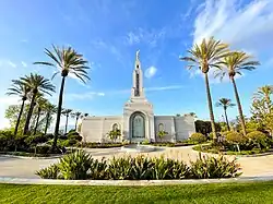 The Redlands California Temple is the 116th operating temple of the Church of Jesus Christ of Latter-day Saints. The intent to construct the temple was announced April 21, 2001, by the church's First Presidency. The temple is the fifth in California.[1] The temple has a single attached spire with a statue of the angel Moroni.[2] The temple was designed by Lloyd Platt & Associates with associate firm Higginson & Cartozian, showcasing a Southern California traditional architectural style.[3] A groundbreaking ceremony, to signify the beginning of construction, was held on December 1, 2001, conducted by Dieter F. Uchtdorf.[4]