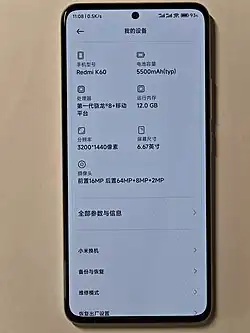 - ^ Team, GSMArena. "Xiaomi Redmi K60 - Full phone specifications". GSMArena.com. Retrieved 2023-03-29.